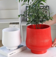 Macetas de cerámica grandes para suelo nórdico, decoración del hogar, maceta de flores de Navidad, textura de tira para maceta de mesa para plantas verdes y flores secas