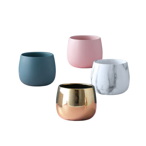 Maceta hidropónica en maceta electrochapada INS nórdica, recipiente de vela de cerámica con maceta suculenta redonda moderna de Color del cliente