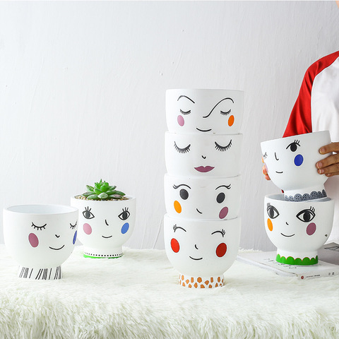 Maceta de cemento creativa nórdica, expresión facial pintada, personalidad artística Simple, planta verde escandinava para interiores y exteriores